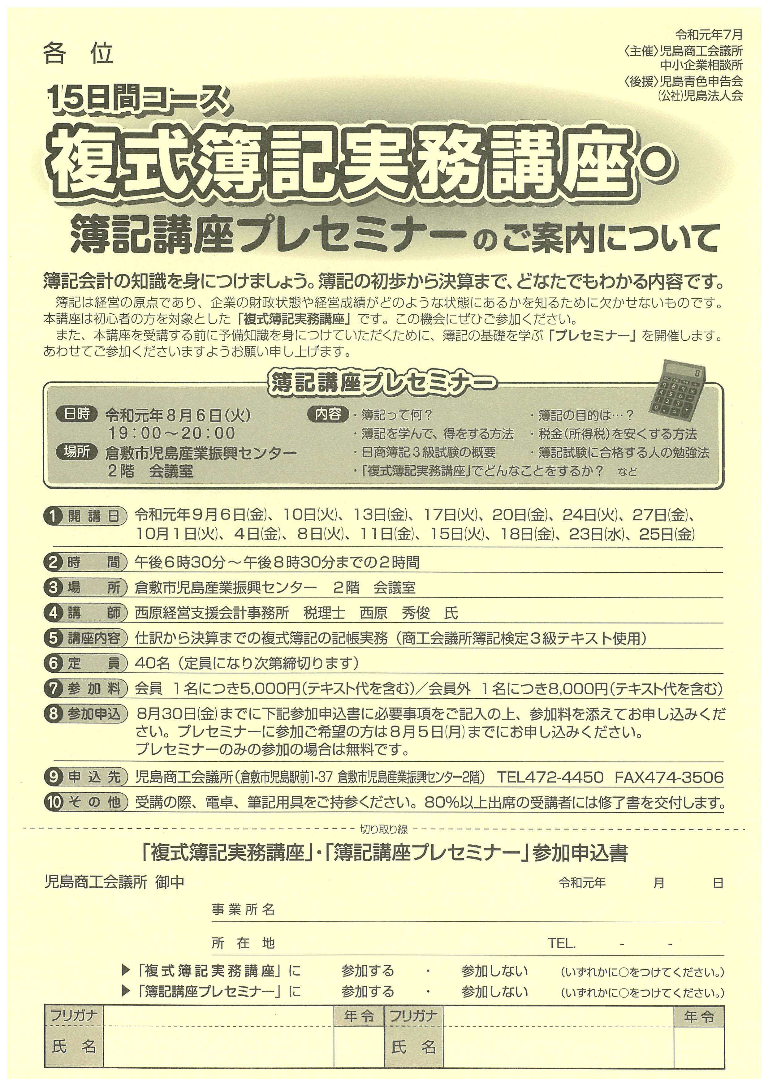 受講の際、電卓、筆記用具をご持参ください。80%以上出席の受講者には修了書を交付します。